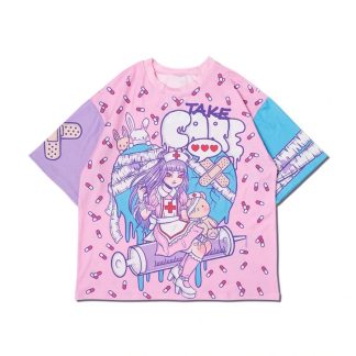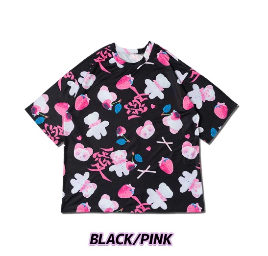 Loose BIG size silhouette T-shirt with pastel, cute bears and the kanji, which means “Love”.