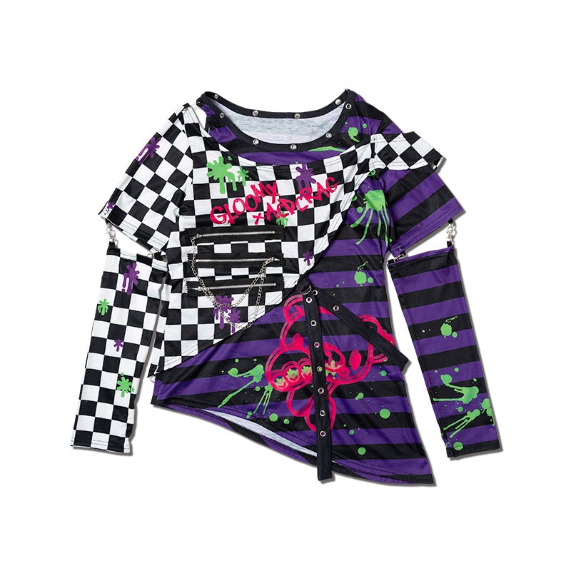 Chained separated long sleeve t-shirt created in a MIX of nostalgic Harajuku-kei and “Emo-punk” styles