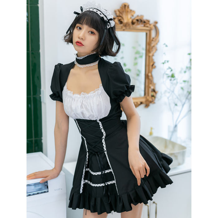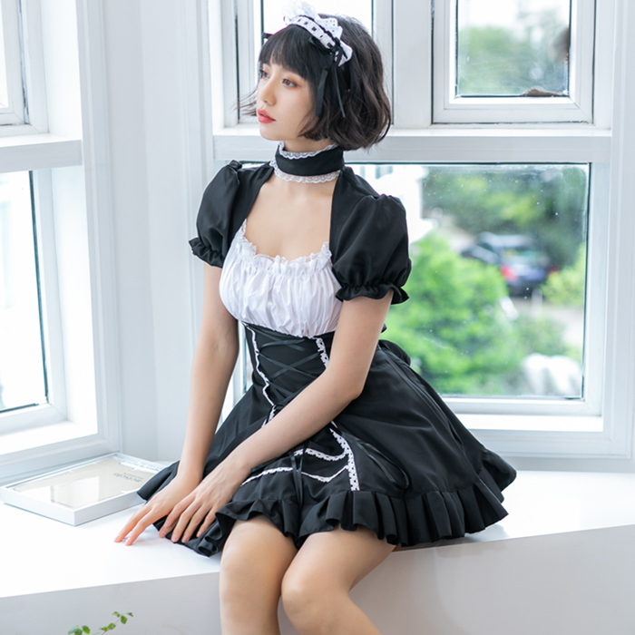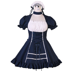 A simple Maid costume you can use for multiple characters. Meant for cosplay, please select the correct size. The Set contains a Dress, Choker and Headpiece.